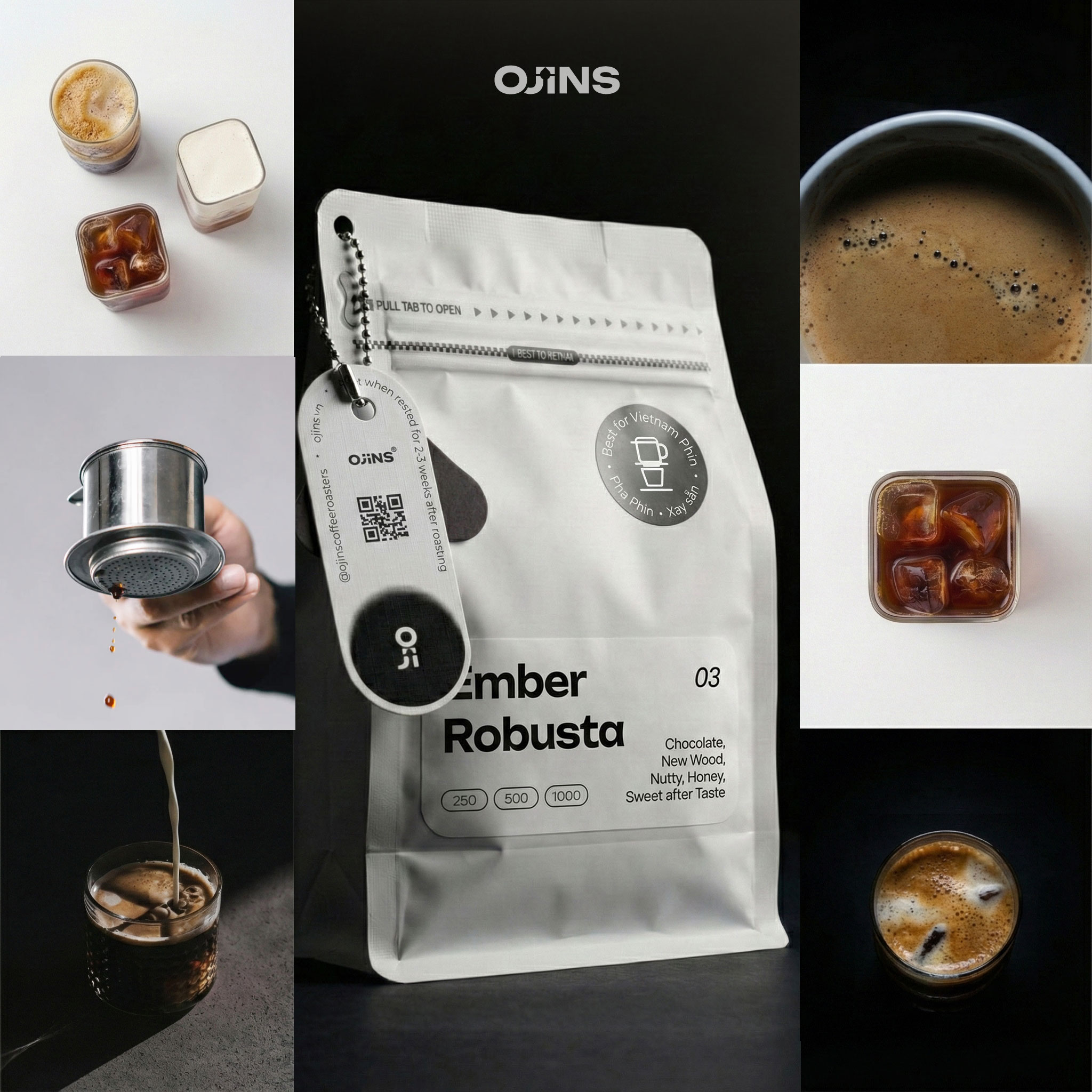 Each coffee bean is carefully blended and roasted by Ojins to its optimal level, bringing out the finest flavors and most delicate aromatic notes of specialty Robusta. This is a truly one-of-a-kind experience that cannot be found in any other brand, standing as a testament to our meticulous craftsmanship at every stage. Join Ojins in sparking creativity and savoring this distinctive flavor on your own coffee journey.